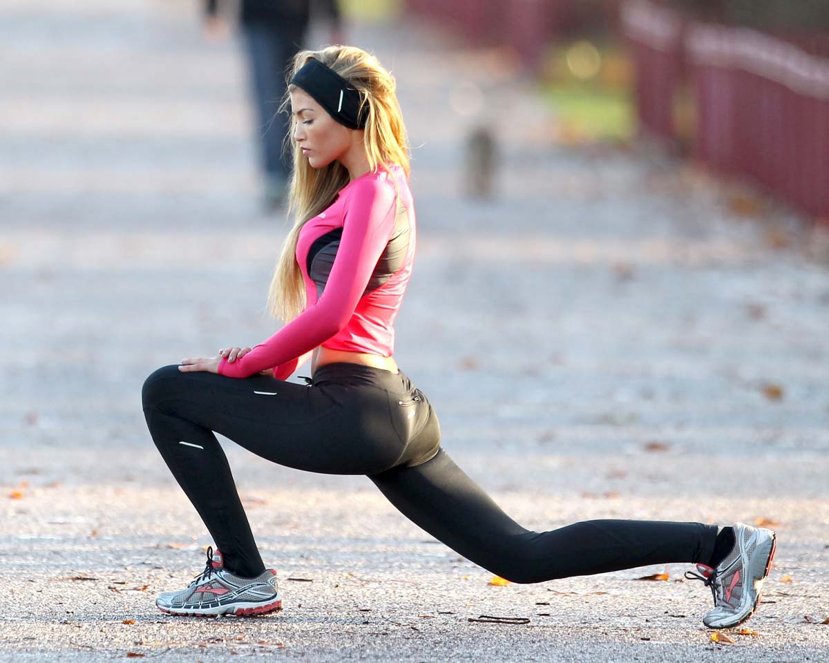 Here’s former Katie Price‘s protege Amy Willerton working on her fitness in some staged candid shots in London. I don’t know why these nobodies do this, but I wish they would at least ask for my services instead of some dude with a cheap camera on auto settings. Anyway, I’m digging the outfit and some of her moves. Enjoy the view!
