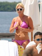 The other day I had some Brooke Hogan naked pic for PETA, and today here are some Brooke Hogan bikini pictures… I can’t believe I’m saying this but she actually looks a little less manly in these bikini pictures and as much as I hate to admin it, Brooke Hogan is looking pretty damn hot between her neck and her belly button. The rest of her is way too much Hulkamania for my taste, but I know some of you guys like a girl with meat. So, enjoy