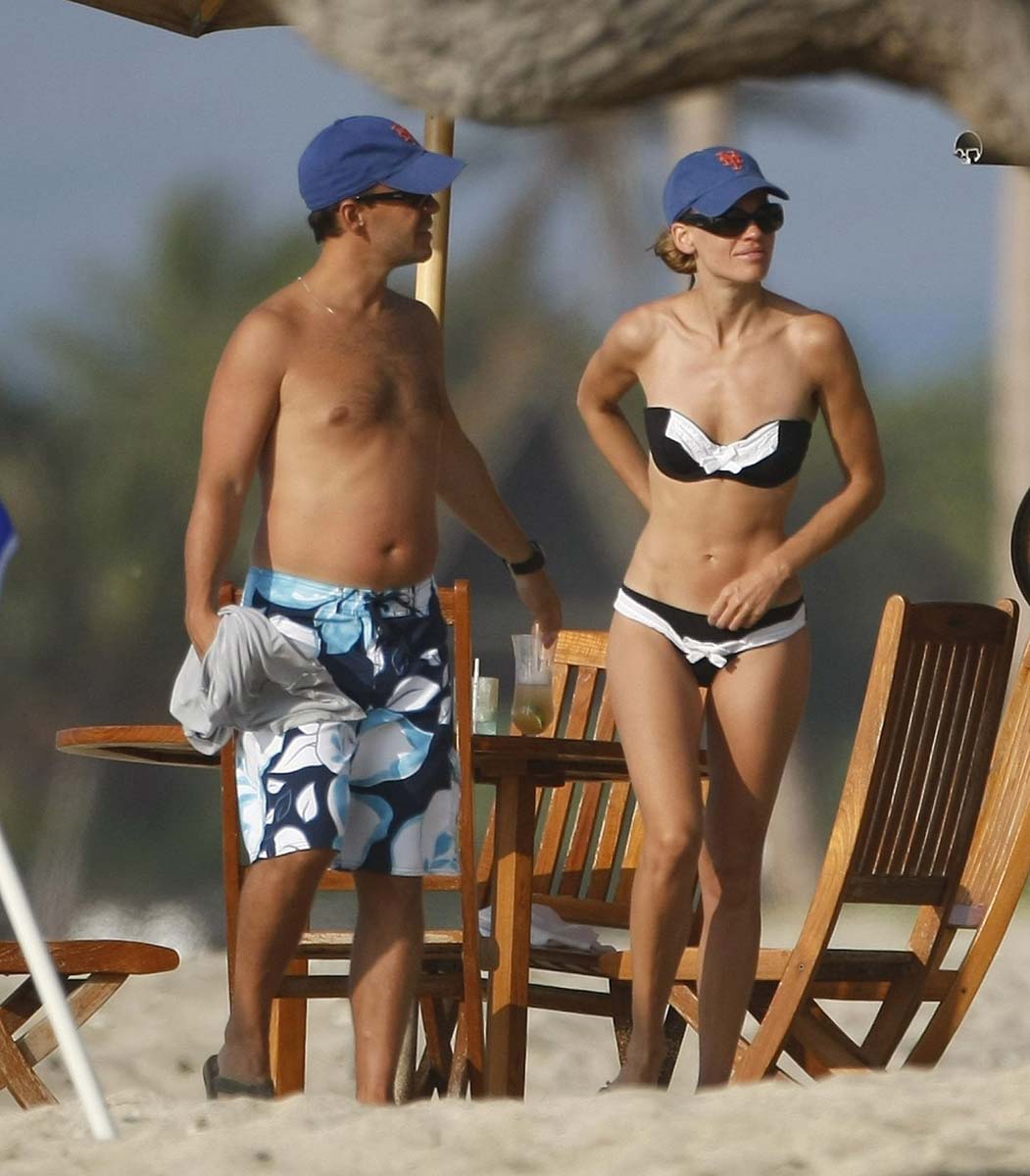 Normally I’m not a big fan of Hillary Swank, she was always for some reason reminded me of a dude with tits, especially because of her face. But here I have some pretty hot Hillary Swank bikini pictures while she hanging out in her little bikinis on some beach and well-hid her face with glasses and a hat. I like it! She was always too manly for my taste, but she seems to be back to normal these days. I like the slutty cowgirl hat too, all she’s missing is a giant fruity adult beverage and some douchebag doing body shots off of her and she’d fit right in at any spring break party. Enjoy