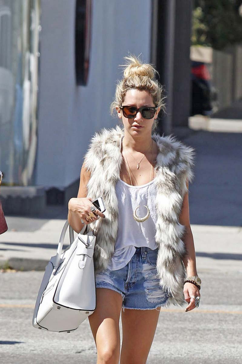 Here is Ashley Tisdale doing what she does best yesterday afternoonin and that’s nothing but looking sexy as fuck while showing off her ridiculously sexy little stems in ultra short shorts… I’ve made fun of Ashley Tisdale nude for being facially-challenged in the past, but between all the short shorts, leggings and bikini posts these past few weeks, I’m really starting to come around. But that’s no reason for Ashley to stop trying to prove me wrong. Keep ’em coming, please.