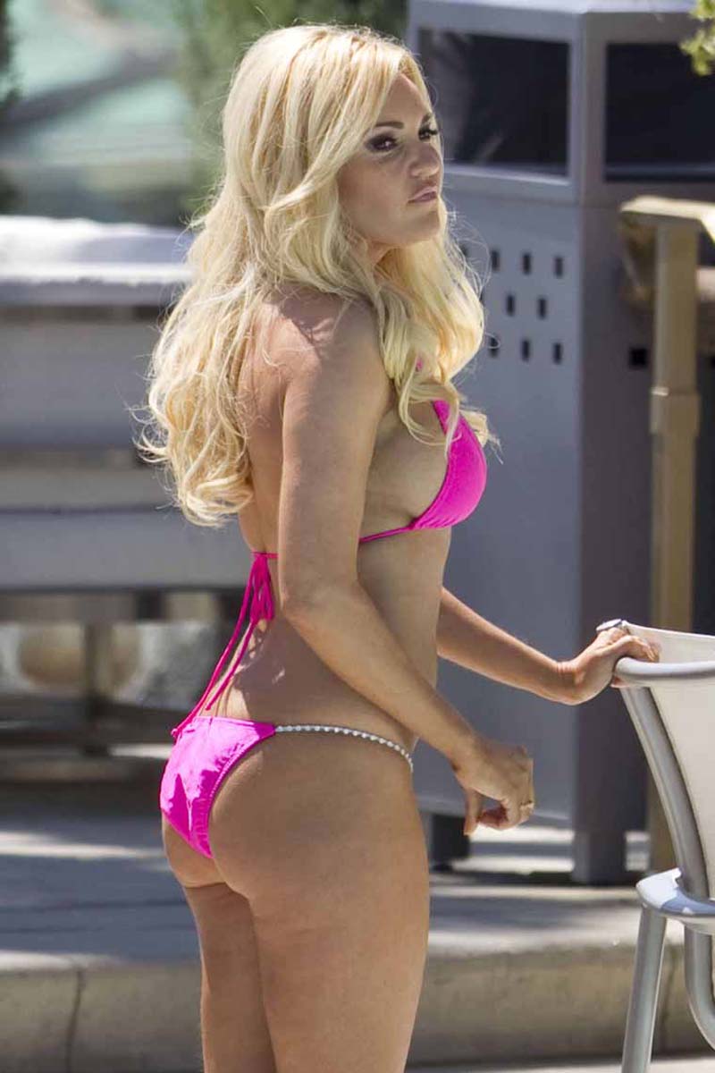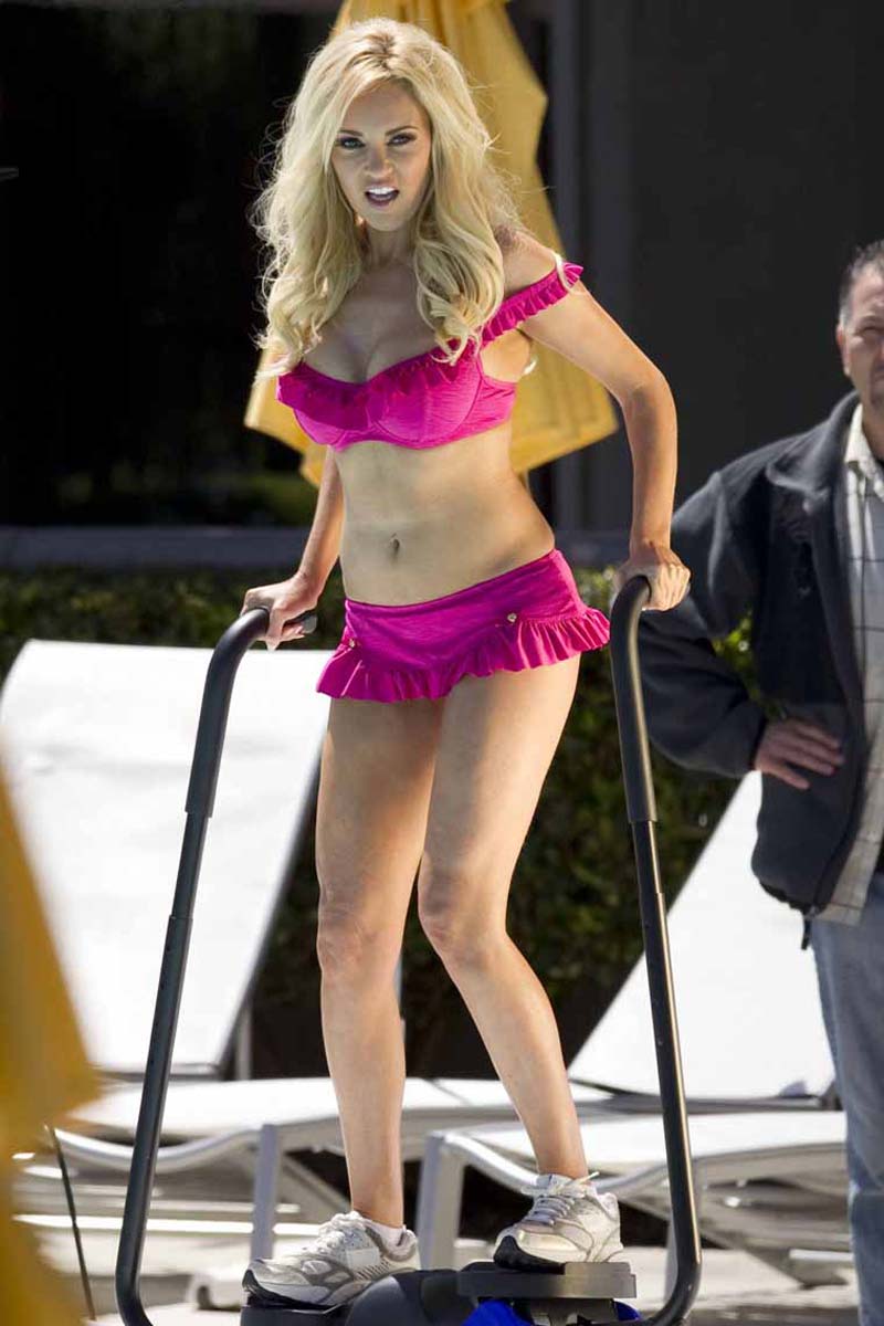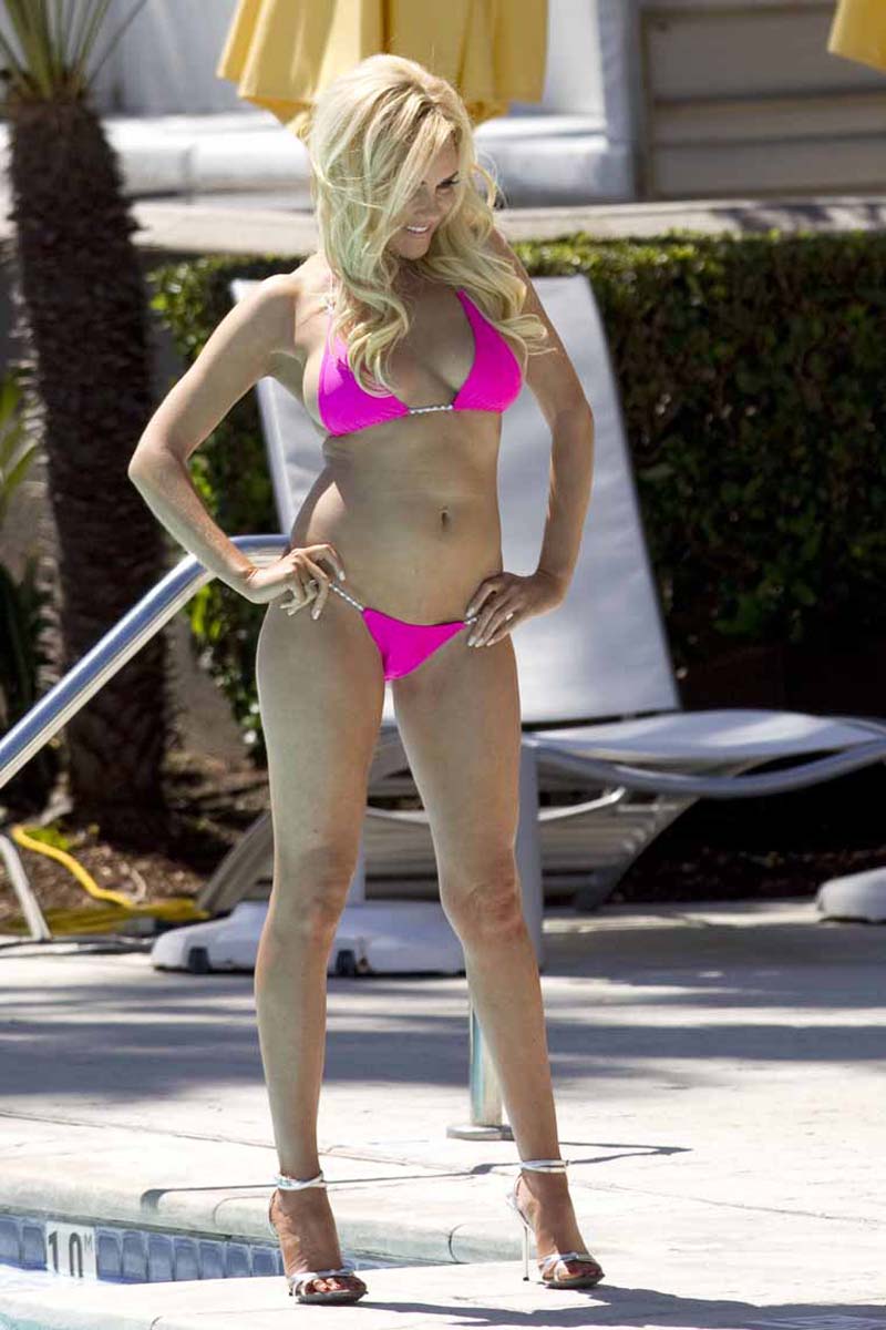Here is former Girl Next Door Bridget Marquardt hanging out in her little pink bikini and high heels for some photo shoot in LA. Although it look she had some face work done and her once upon a perfect body is a bit flabby now, she still somehow looks very sexy. Yet she was one of the hottest chick in world, so it’s nice to see some new pictures of her out there showing off her stuff. Enjoy this Bridget Marquardt hot gallery.