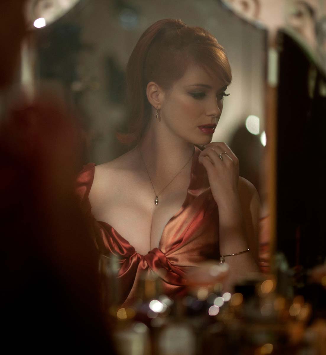 I was in the mood for some giant natural breasts today, so these shots of Christina Hendricks and her giant assets showed up at exactly the right time. Here are Christina Hendricks breasts modeling for Vivienne Westwood Jewelry. It’s funny, but I didn’t notice any jewelry. But I’m sure those massive sweater mounds of Christina’s can sell anything. Enjoy.