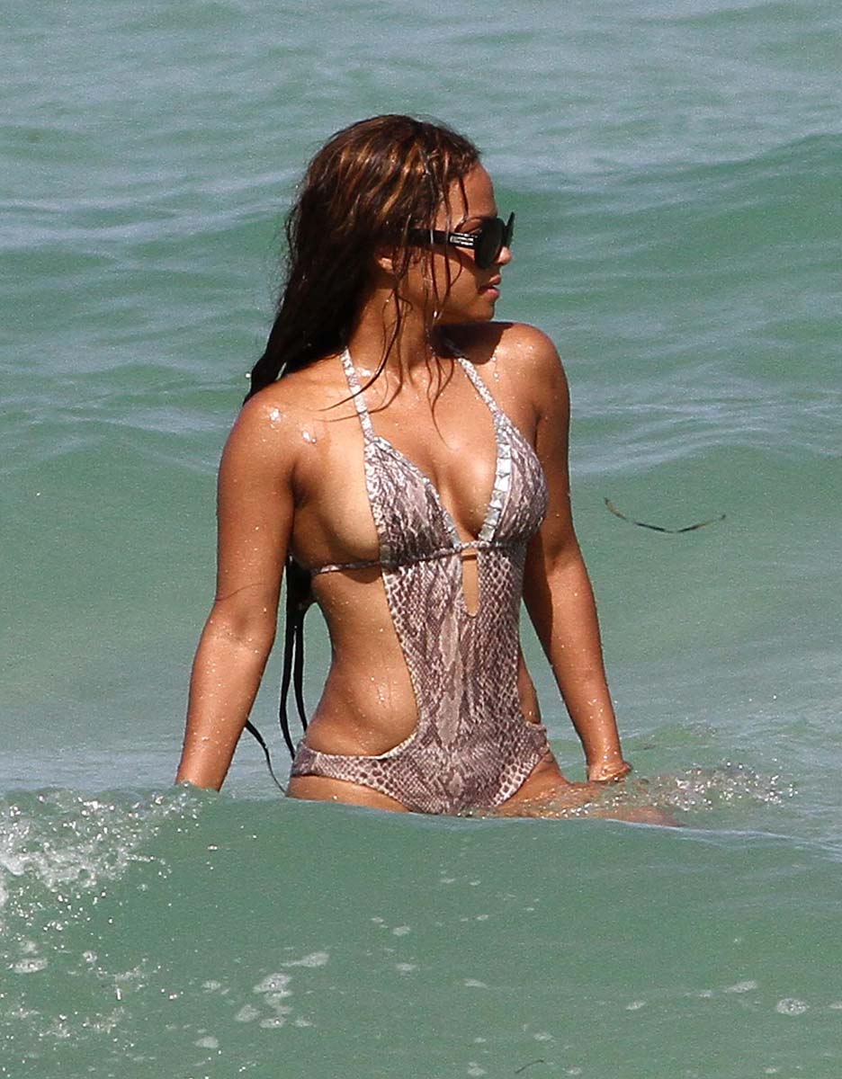 I don’t have this Christina Milian chick on the site very often, but when I do she never fails to impress me with her hotness. Here she is enjoying the beach in Miami and impressing me with her amazing MILF body in a skimpy little swimsuit. Why isn’t Christina Milian more popular? I mean, with a cute little booty and breasts like that you’d think more people would take notice. She needs to spend more time in a bikini… Enjoy!