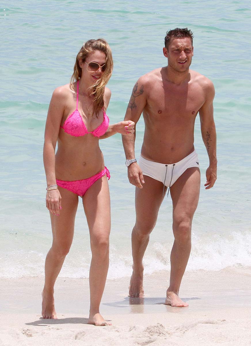 I thought the best way to start Monday morning was with some pictures of a really hot nobody in a crazy small bikini. So I decided to post some awesome pictures of Ilary Blasi showing us what a European thong bathing suit is supposed to look like. Awesome. Of course she’s with a guy wearing a Speedo… Who didn’t see that coming? Anyway, if you want to see more pictures from her check this Ilary Blasi bikini gallery.