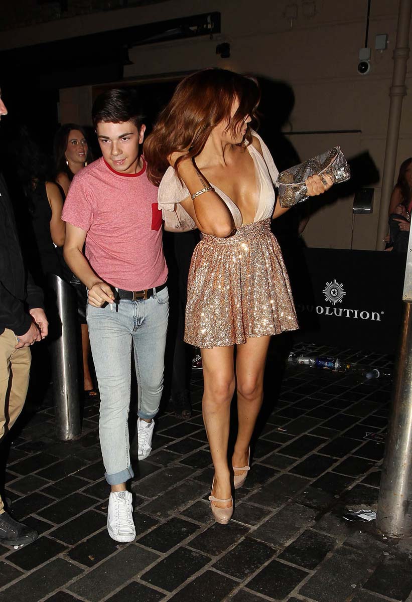 Here is Maria Fowler taking her big fake breasts out for a night on the town. I don’t know anything about fashion, I’m still waiting for torn boxer shorts to become popular, but this Maria Fowler chick’s dress looks like it’s got wings. I don’t know if it’s supposed to make her look like an angel or a chicken, but I like it. She’s not exactly a big star or even a household name, but she’s dropping some really high quality cleavage so I had to post shots of her for you guys. You’re welcome.