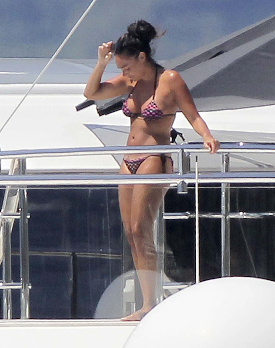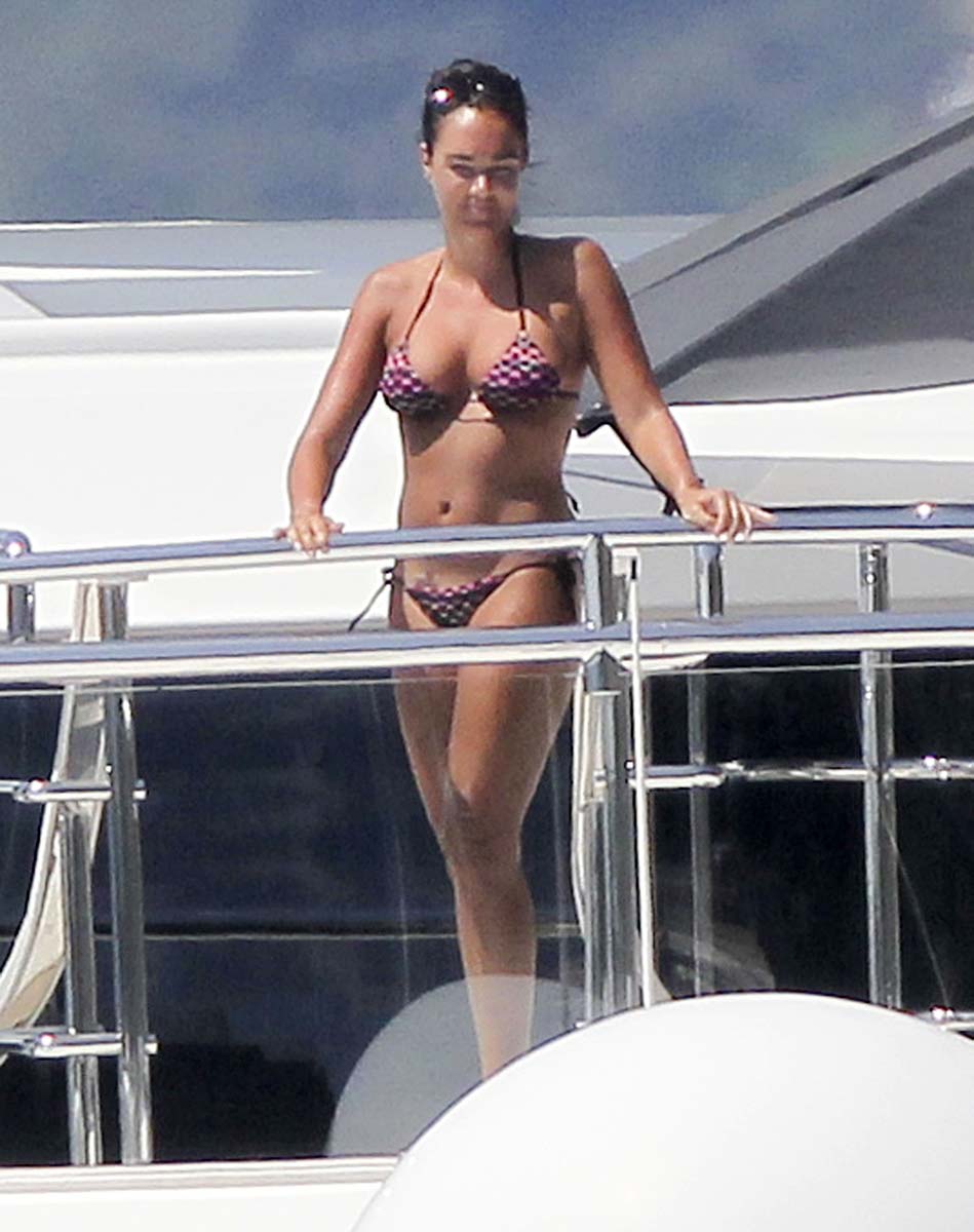 The good news is that this another day of great pictures of the British hottie and her million-dollar funbags at the beach and the bad one is that Tamara Ecclestone is on her honeymoon with some ridiculously lucky bastard. Hopefully seeing her in a bikini will cheer you guys up a little though. And sorry for the slightly blurry shots. Given her love of paparazzi, I can’t believe Tamara didn’t invite them along on the honeymoon with her. Let’s hope that we would have this days more Tamara Ecclestone bikini pictures of better quality and of course without her douche husband.