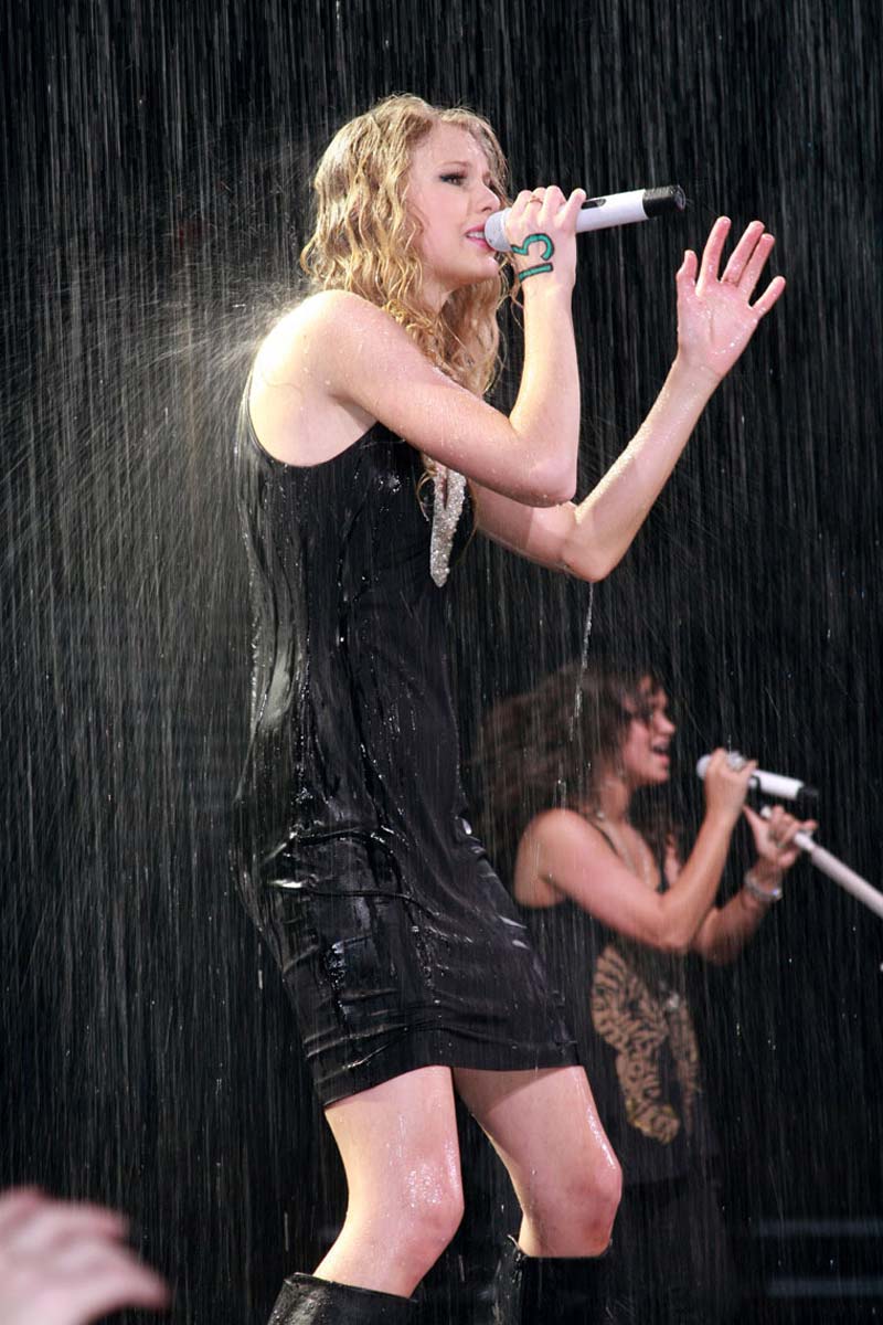 Taylor Swift rocks out on stage at the St. Pete Times Forum in Tampa, Florida, kicking off her second leg of her Fearless tour in the US.Taylor Swift was wet and really sexy in diferent outfits for her fans on stage and she decided to shows nice upskirt but she was dressed panties…she should be more like other teen girls no panties at all