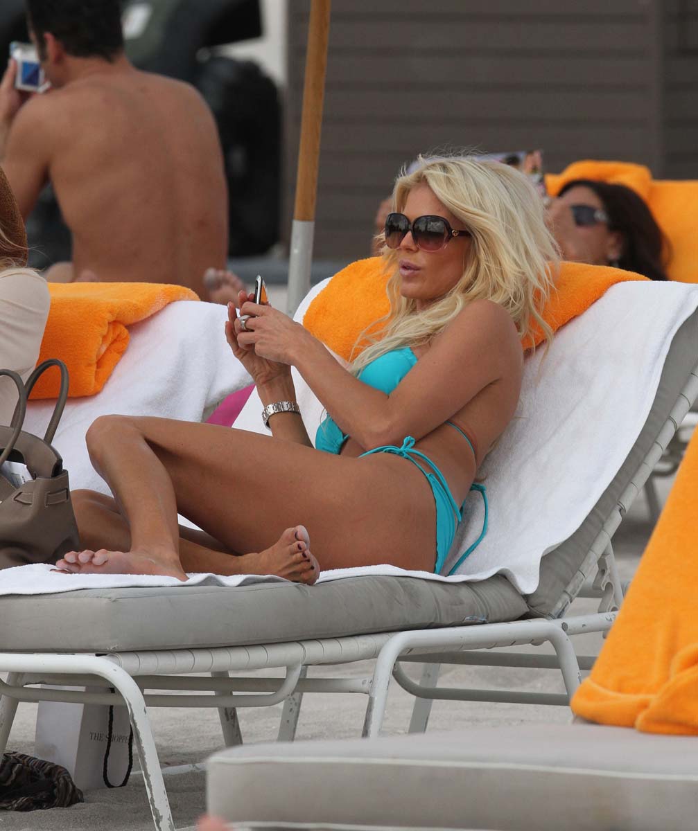 It’s been a little while since we’ve seen Victoria Silvstedt, but here’s the permanent vacation-goer hard at work again, lounging at the beach in the bikini. It’s nice to see she got back to the office quickly after the holidays. That’s dedication. Anyway, it looks like she’s reading that 50 Shades of Grey book, and I never realized Victoria was into that kind of thing. I haven’t done it in years, and it’s pretty kinky, but for Victoria, I’m willing to try… Somebody hand me my glasses, I’m going to read a book. Enjoy this Victoria Silvstedt bikini gallery.